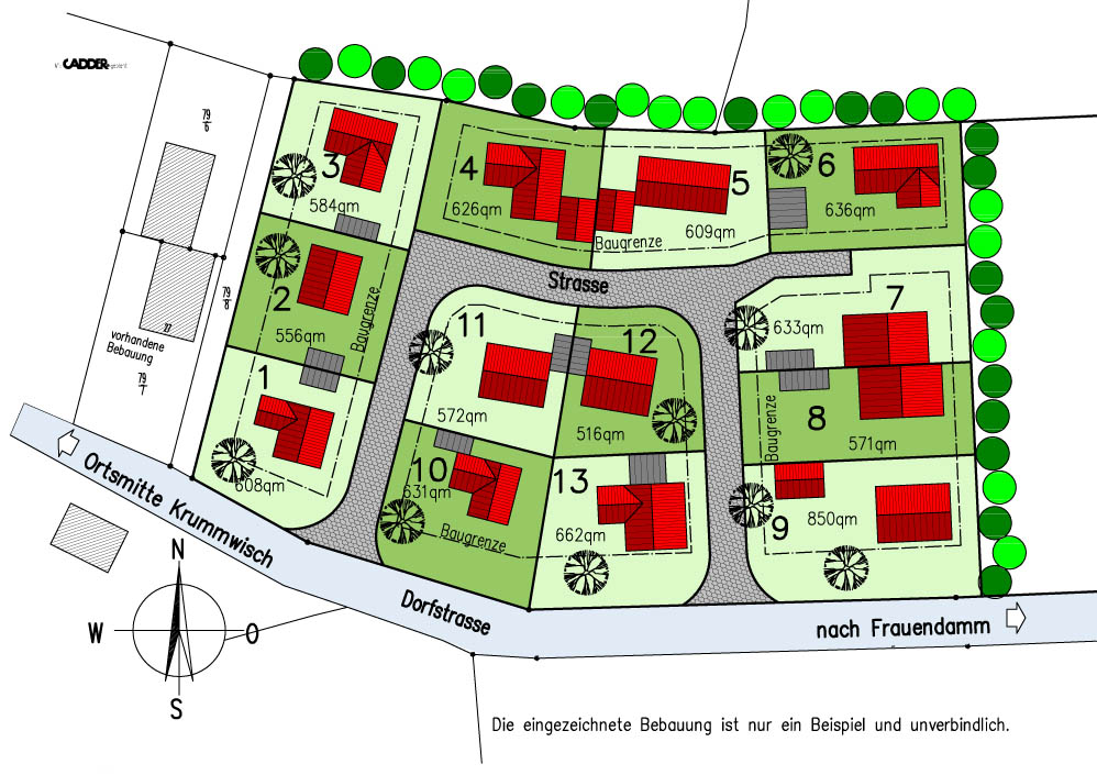 Hier sehen Sie ein Beispiel, wie die Bebauung